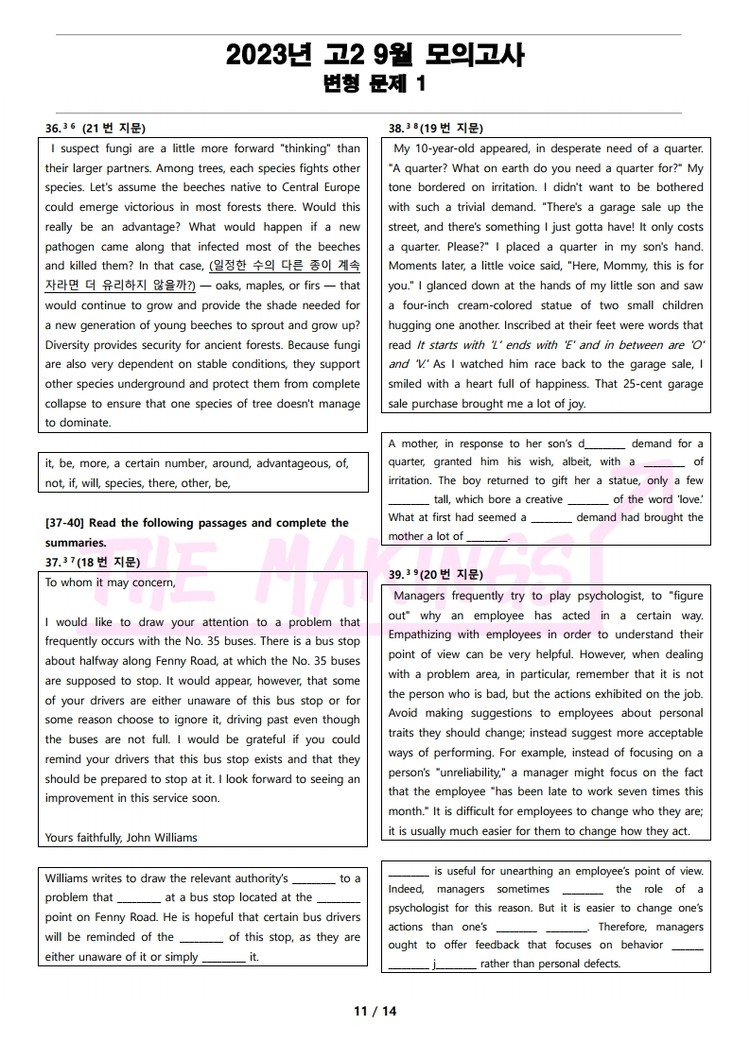 일반 워크북 형태의 문제에서 벗어나 The Makings가 만든 2023년 고2 9월 전국 연합 모의고사 변형 문제 Part 1