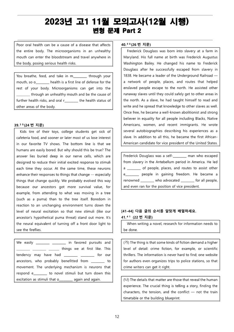 더메이킹스(The Makings)가 제작한 2023년 고1 11월(12월 시행) 전국 연합 모의고사 변형 문제 Part 2의 지문입니다.