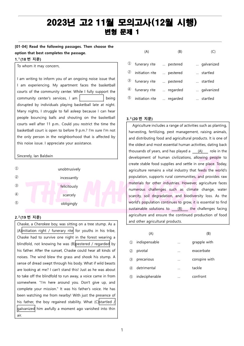 일반 워크북 형태의 문제에서 벗어나 The Makings가 만든 2023년 고2 11월(12월 시행) 전국 연합 모의고사 변형 문제 Part 1