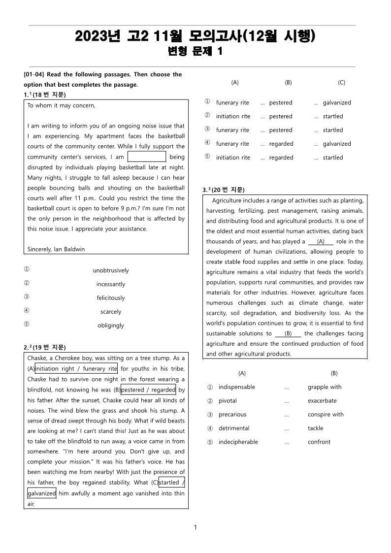 2023년 고2 11월(12월 시행) 전국 연합 모의고사 변형 문제 Part 1 (44문항) (워드파일/편집가능)