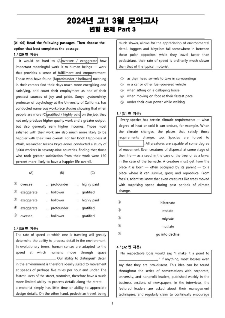 더메이킹스(The Makings)가 제작한 2024년 고1 3월 전국 연합 모의고사 변형 문제 Part 3의 지문입니다.