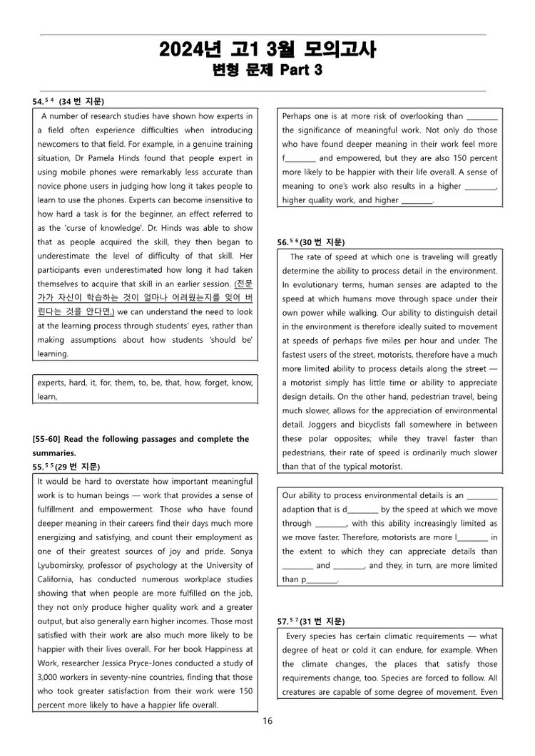 일반 워크북 형태의 문제에서 벗어나 The Makings가 만든 2024년 고1 3월 전국 연합 모의고사 변형 문제 Part 3