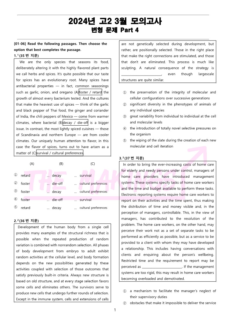 일반 워크북 형태의 문제에서 벗어나 The Makings가 만든 2024년 고2 3월 전국 연합 모의고사 변형 문제 Part 4