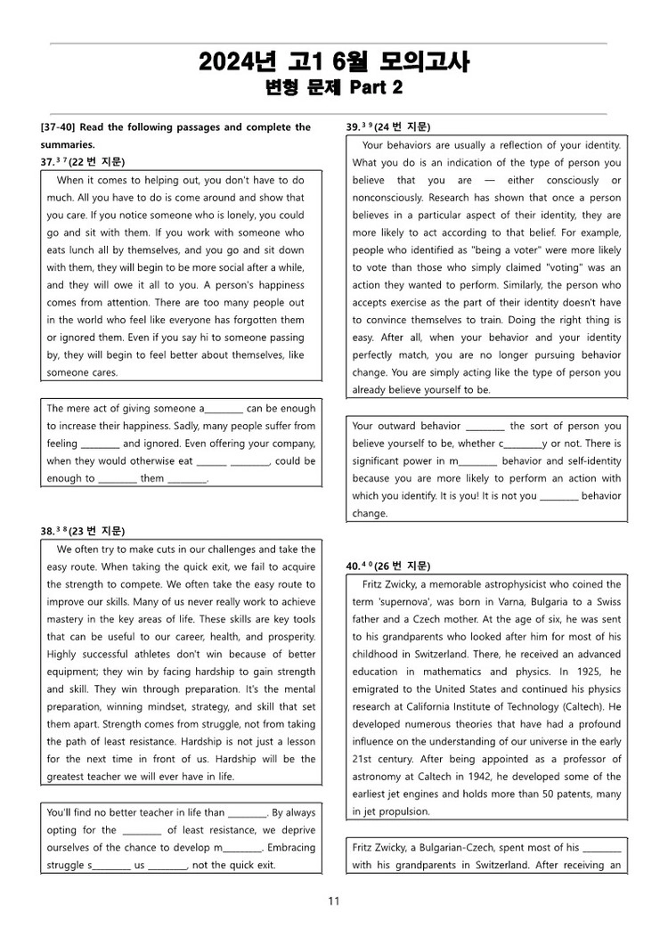 더메이킹스(The Makings)가 제작한 2024년 고1 6월 전국 연합 모의고사 변형 문제 Part 2의 지문입니다.