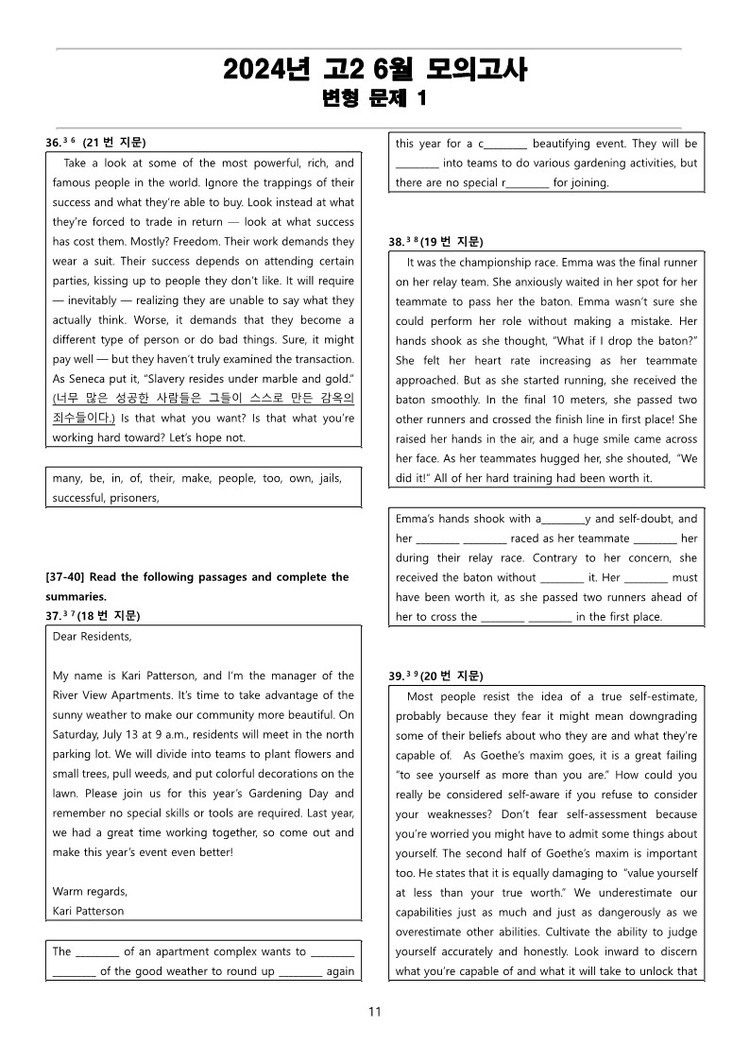 일반 워크북 형태의 문제에서 벗어나 The Makings가 만든 2024년 고 2 6월 전국 연합 모의고사 변형 문제 Part 1