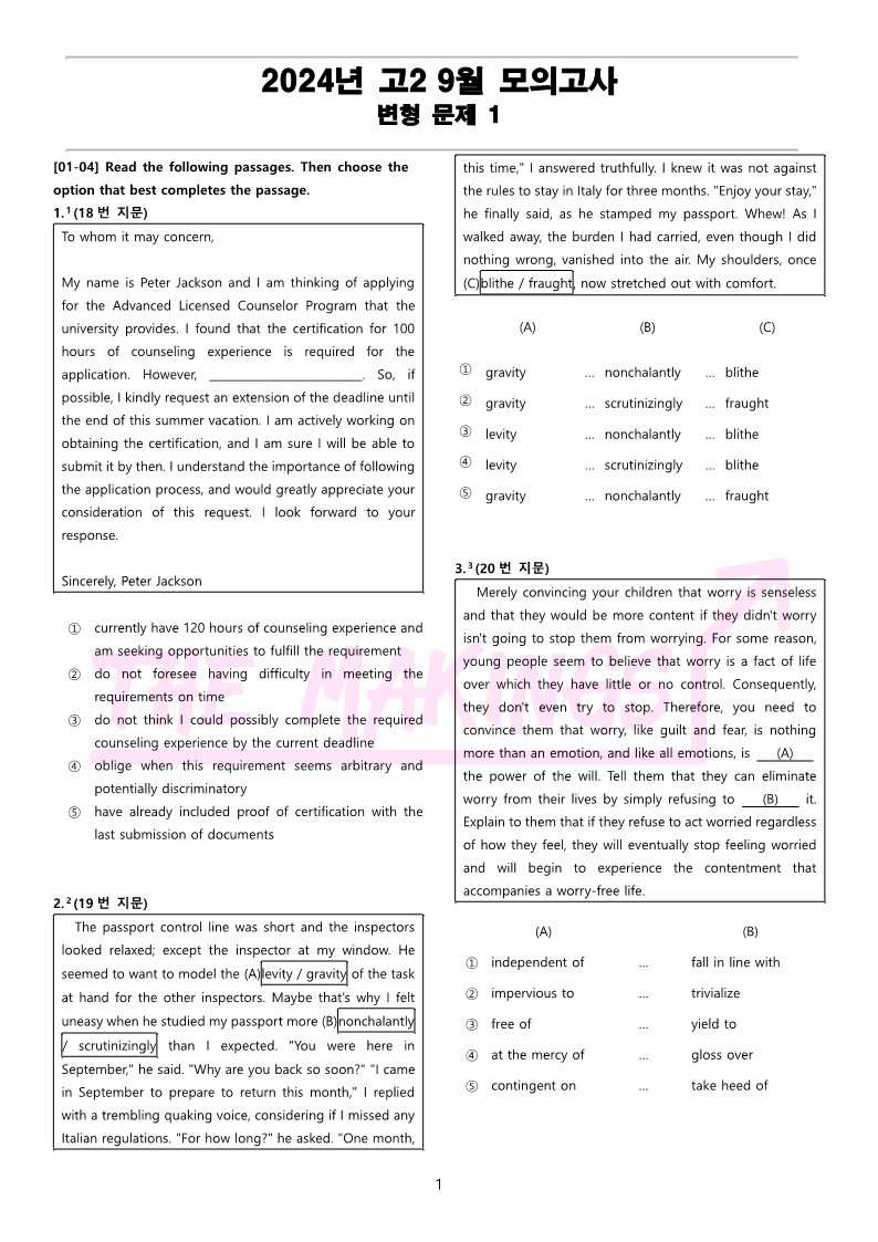 2024년 고2 9월 전국 연합 모의고사 변형 문제 Part 1