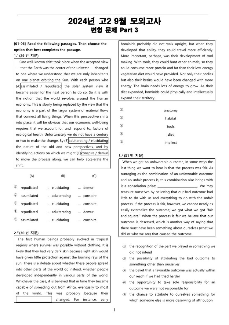 2024년 고2 9월 전국 연합 모의고사 변형 문제 Part 3
