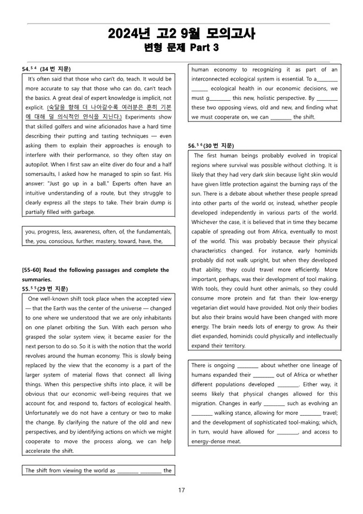 일반 워크북 형태의 문제에서 벗어나 The Makings가 만든 2024년 고2 9월 전국 연합 모의고사 변형 문제 Part 3