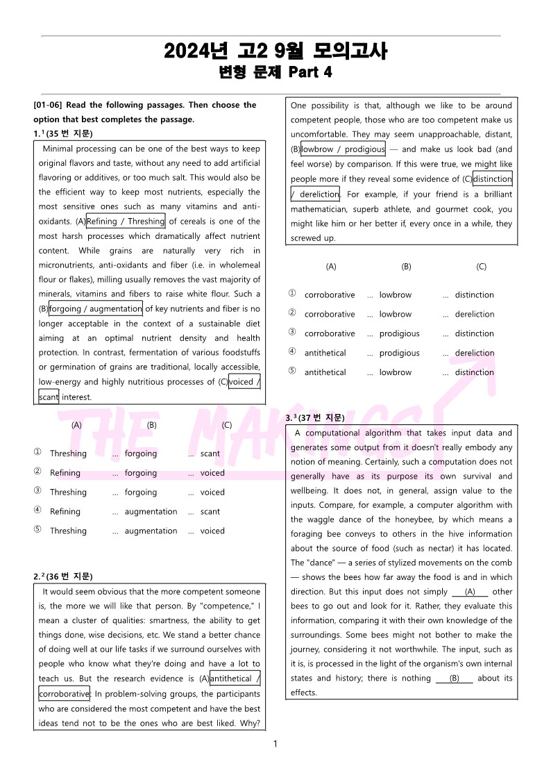 일반 워크북 형태의 문제에서 벗어나 The Makings가 만든 2024년 고2 9월 전국 연합 모의고사 변형 문제 Part 4