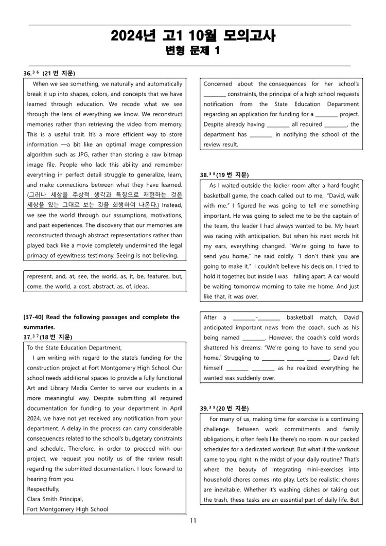 더메이킹스(The Makings)가 제작한 2024년 고1 10월 전국 연합 모의고사 변형 문제 Part 1의 지문입니다.
