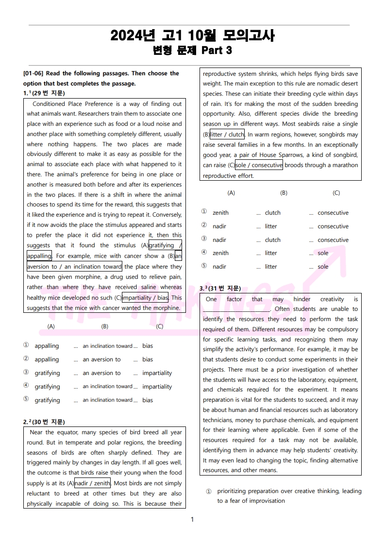 일반 워크북 형태의 문제에서 벗어나 The Makings가 만든 2024년 고2 10월 전국 연합 모의고사 변형 문제 Part 3