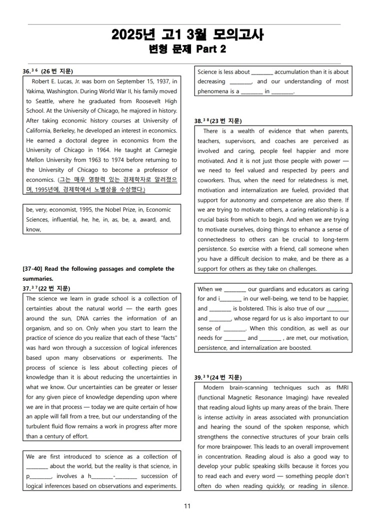 더메이킹스(The Makings)가 제작한 2025년 고1 3월 전국 연합 모의고사 변형 문제 Part 2의 지문입니다.