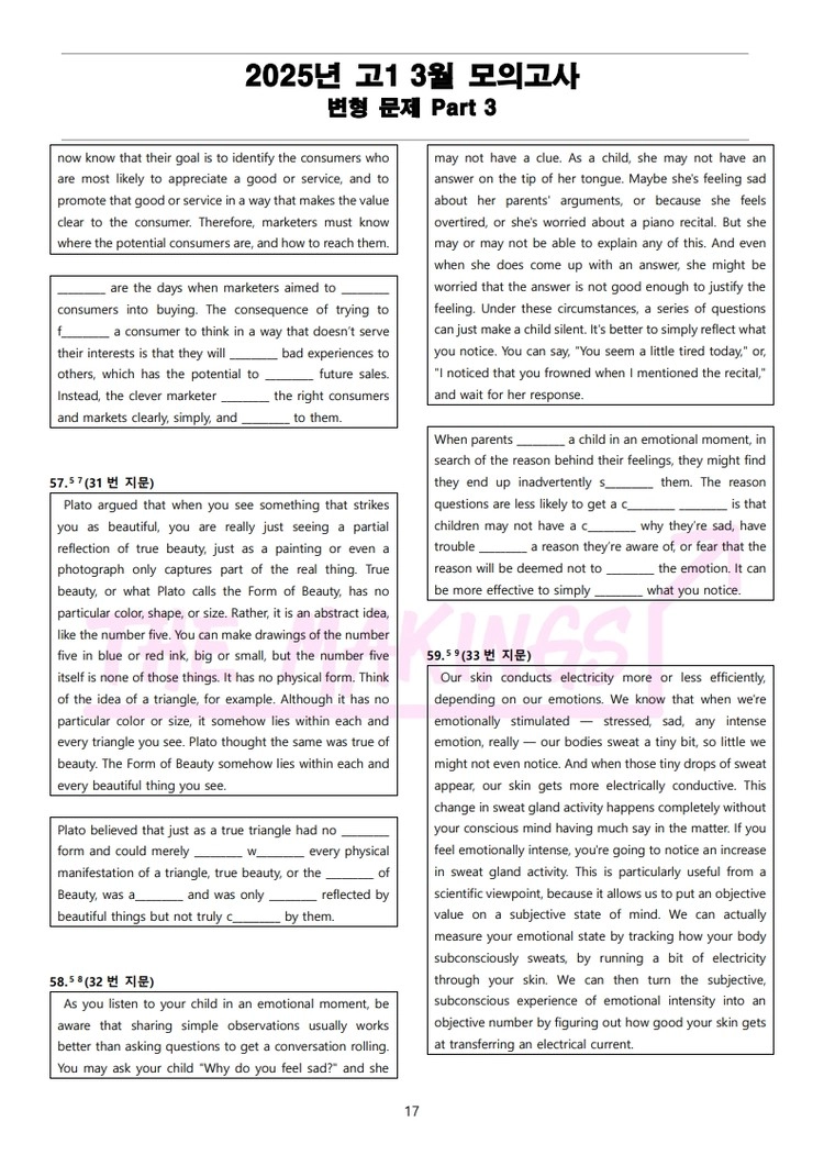 더메이킹스(The Makings)가 제작한 2025년 고1 3월 전국 연합 모의고사 변형 문제 Part 3의 지문입니다.