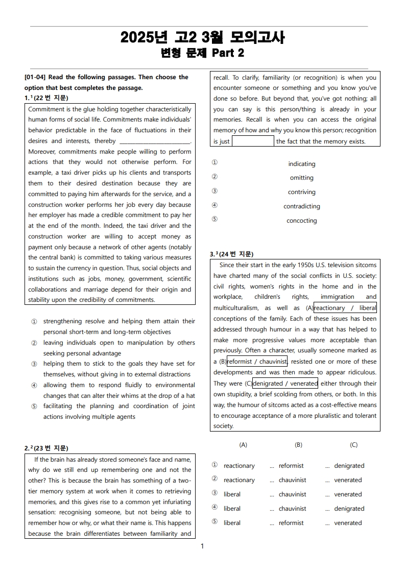 2025년 고2 3월 전국 연합 모의고사 변형 문제 Part 2 (44문항) (PDF)