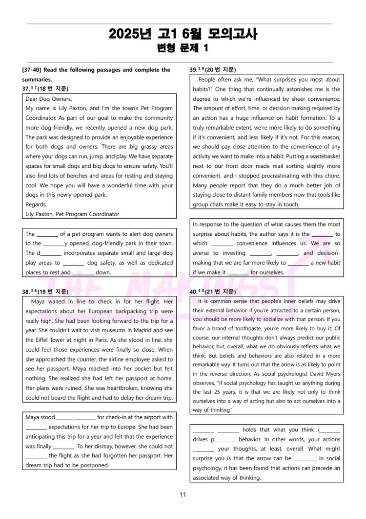 더메이킹스(The Makings)가 제작한 2025년 고1 6월 전국 연합 모의고사 변형 문제 Part 1의 지문입니다.