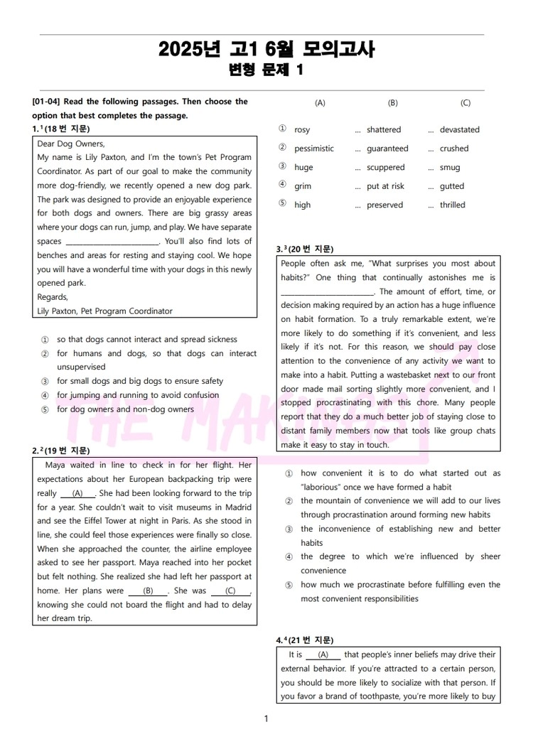 일반 워크북 형태의 문제에서 벗어나 The Makings가 만든 2025년 고1 6월 전국 연합 모의고사 변형 문제 Part 1