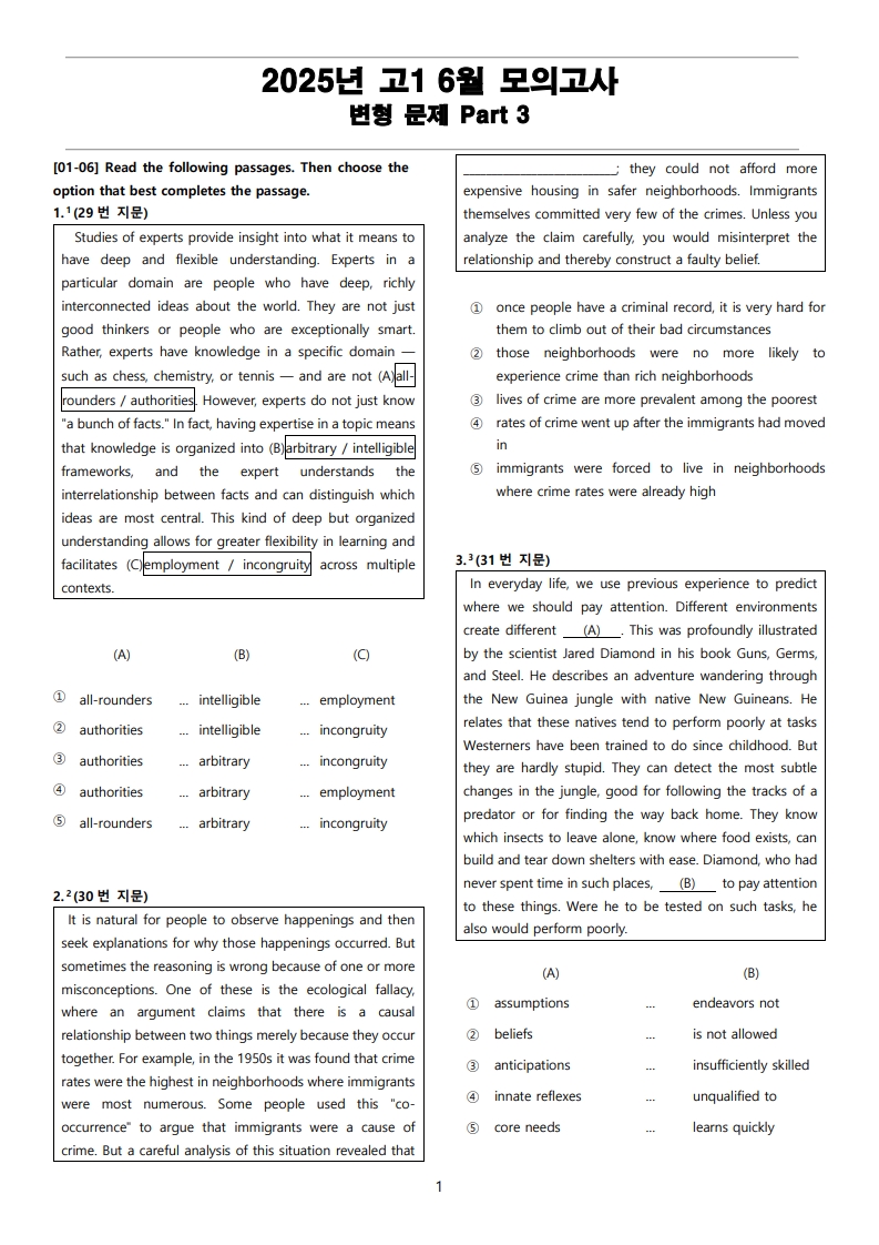 2025년 고1 6월 전국 연합 모의고사 변형 문제 Part 3