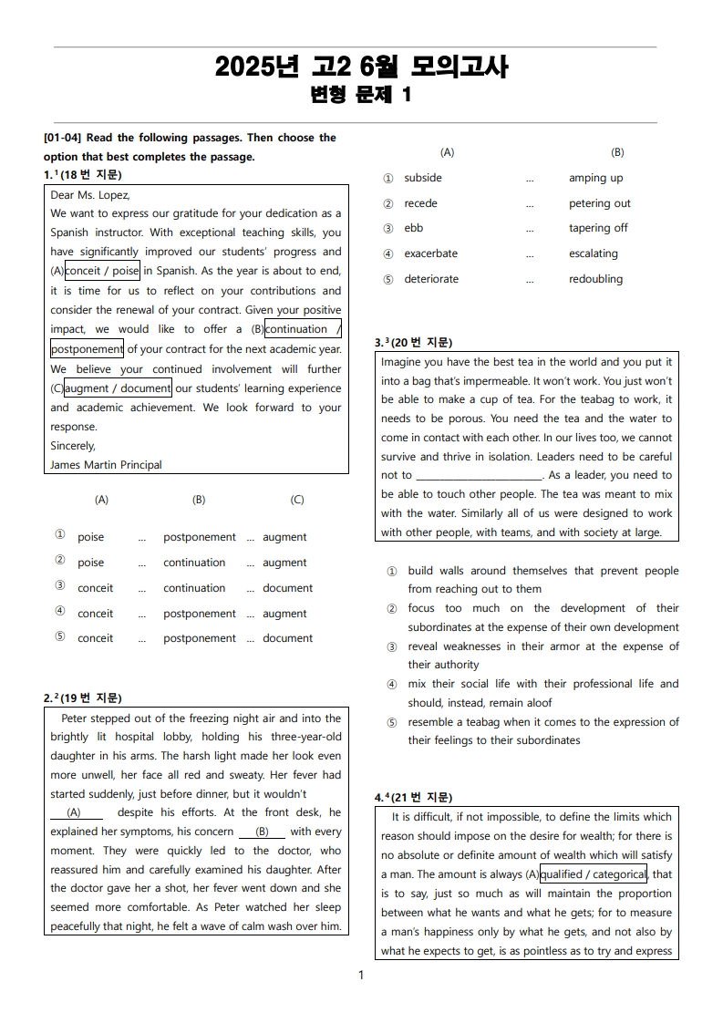 2025년 고2 6월 전국 연합 모의고사 변형 문제 Part 1