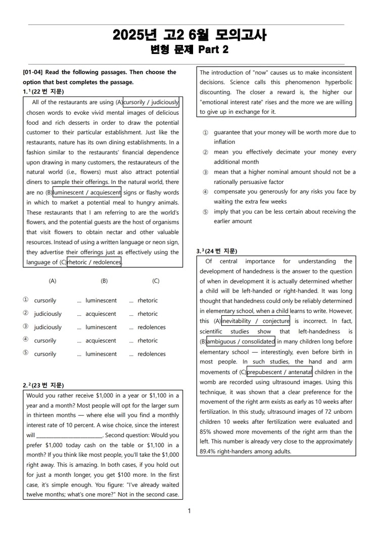 2025년 고2 6월 전국 연합 모의고사 변형 문제 Part 2
