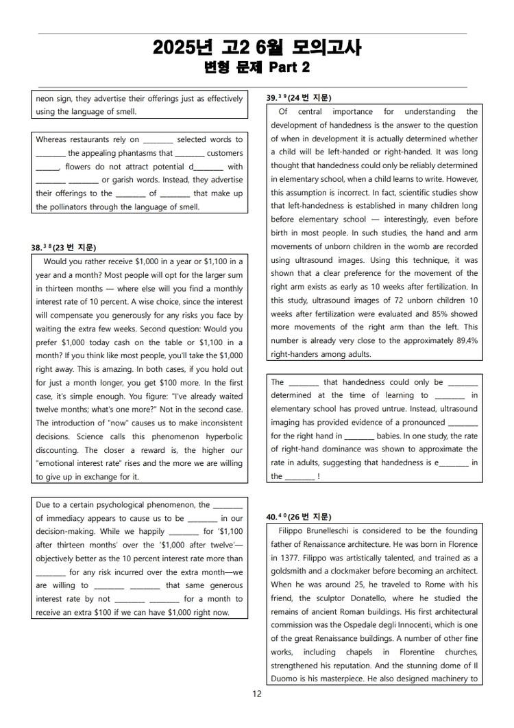 더메이킹스(The Makings)가 제작한 2025년 고2 6월 전국 연합 모의고사 변형 문제 Part 2의 지문입니다.