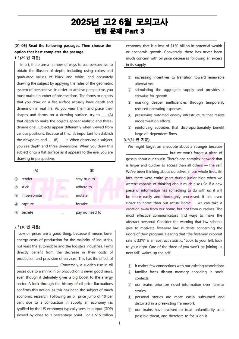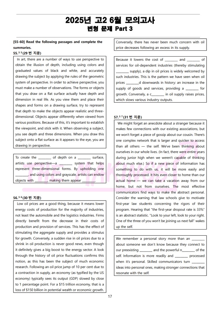2025년 고2 6월 전국 연합 모의고사 변형 문제 Part 3 (66문항) (PDF)