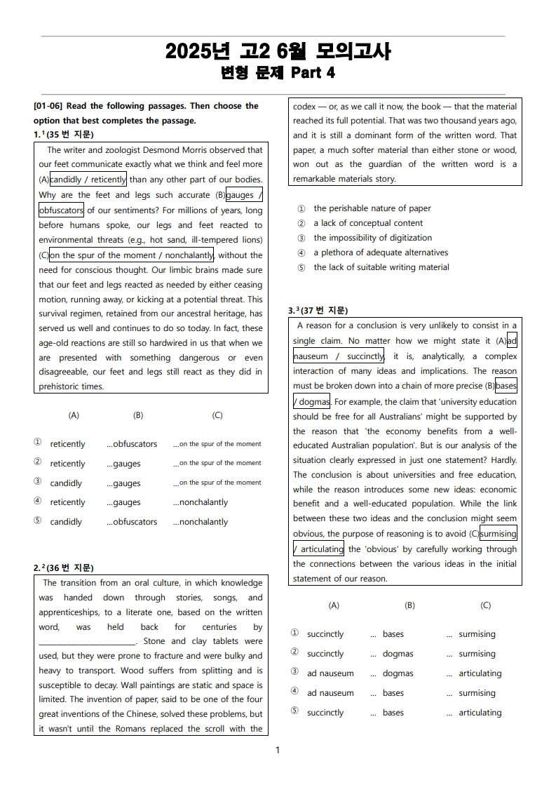 2025년 고2 6월 전국 연합 모의고사 변형 문제 Part 4