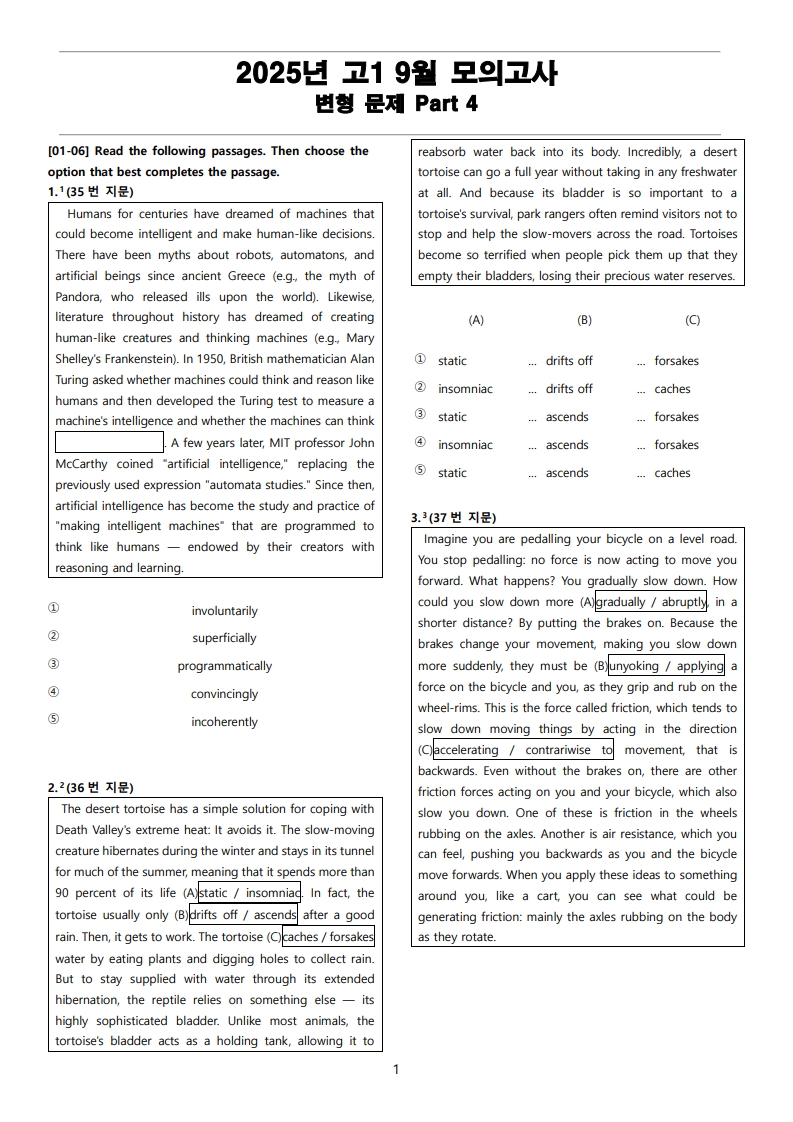 현직에서 강사를 하고 있는 연구진들이 학생들을 위한 최상의 2025년 고1 9월 전국 연합 모의고사 변형 문제 Part 4를 선보입니다.