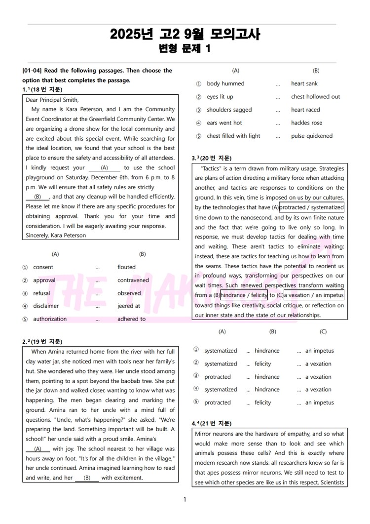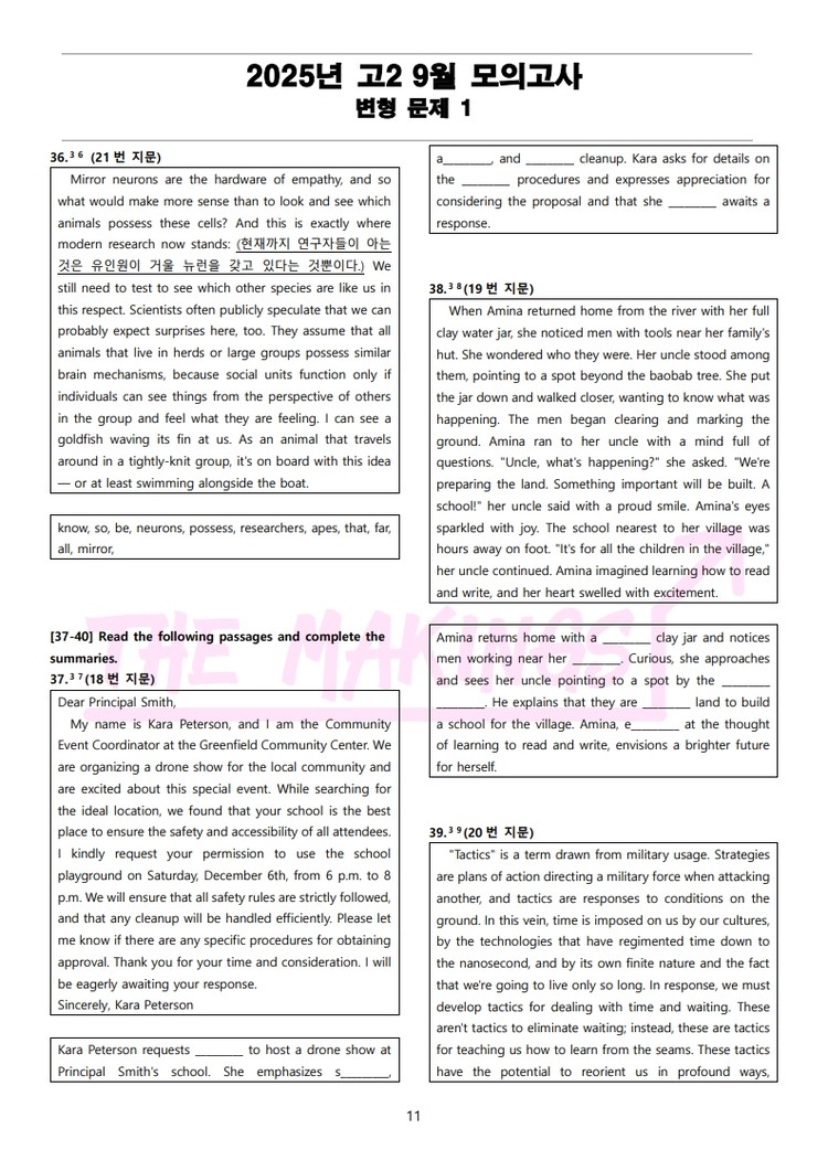 일반 워크북 형태의 문제에서 벗어나 The Makings가 만든 2025년 고2 9월 전국 연합 모의고사 변형 문제 Part 1