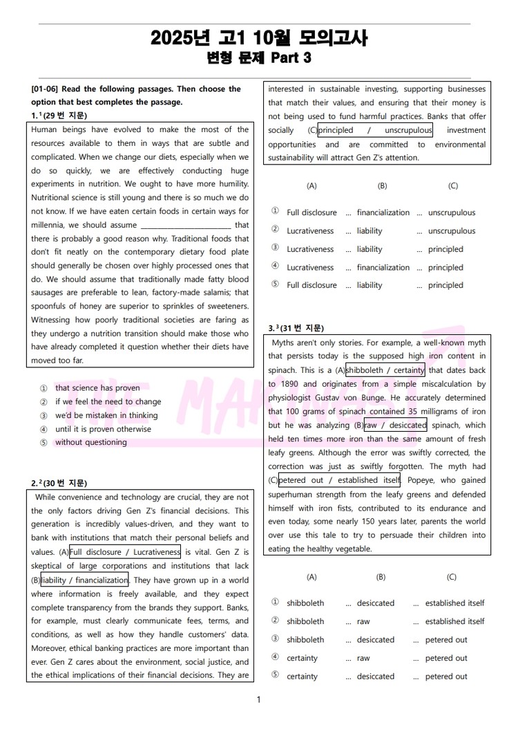 현직에서 강사를 하고 있는 연구진들이 학생들을 위한 최상의 2025년 고1 10월 전국 연합 모의고사 변형 문제 Part 3을 선보입니다.
