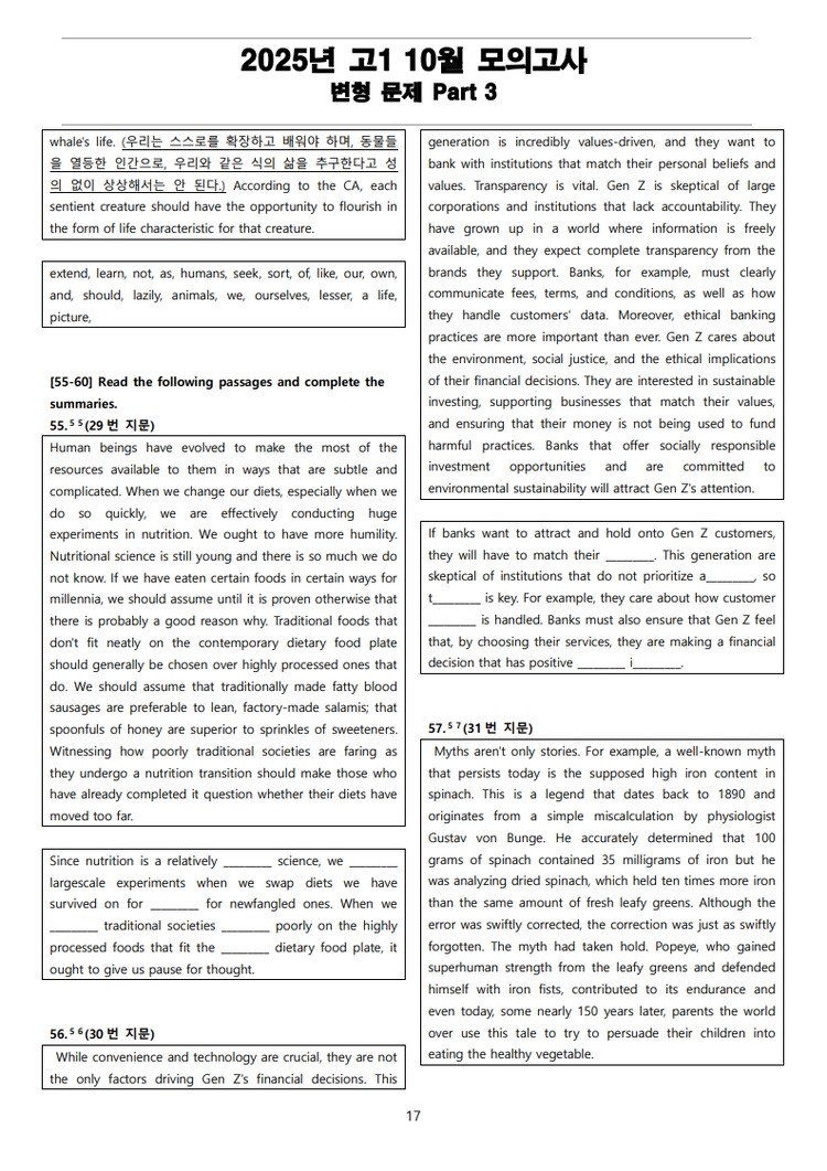 더메이킹스(The Makings)가 제작한 2025년 고1 10월 전국 연합 모의고사 변형 문제 Part 3의 지문입니다.