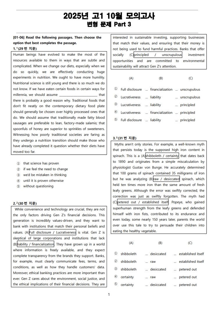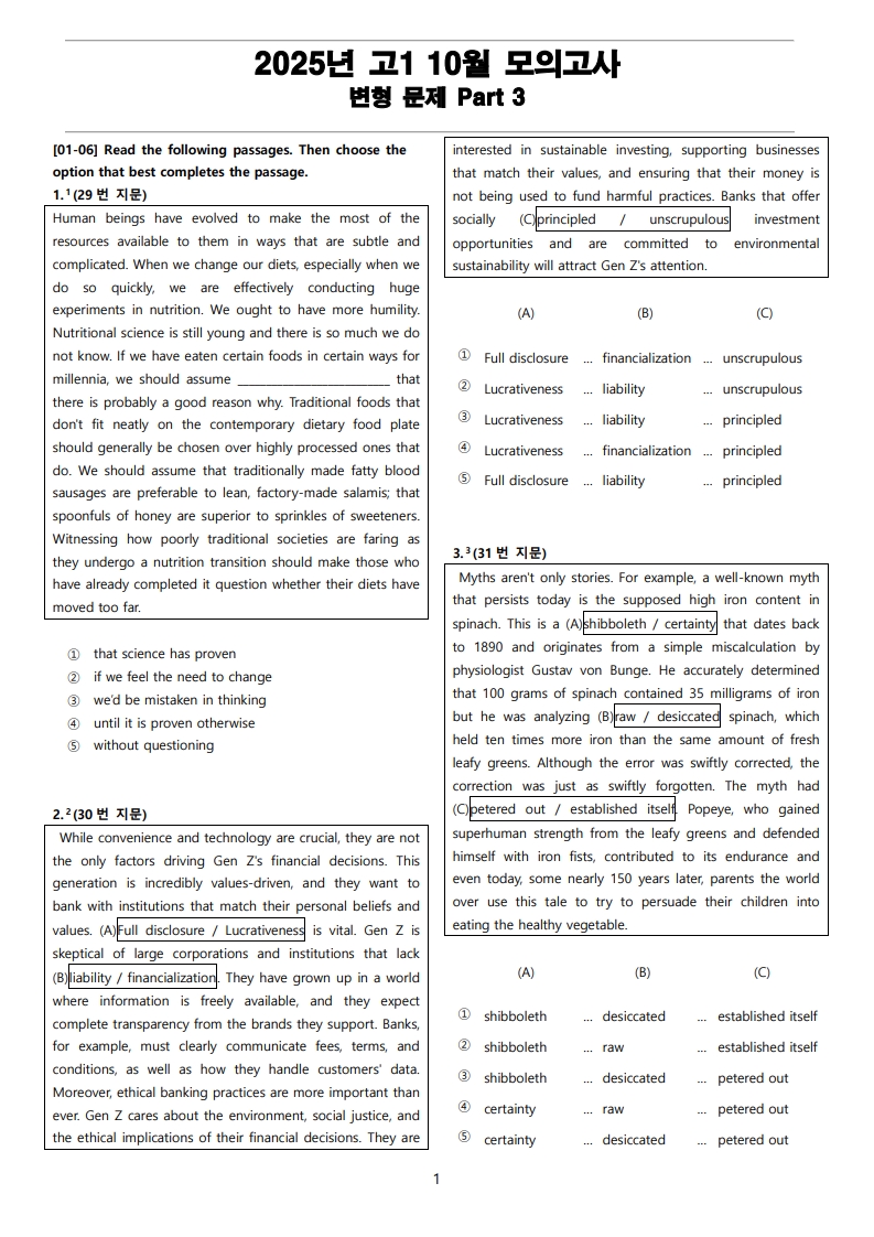2025년 고1 10월 전국 연합 모의고사 변형 문제 Part 3