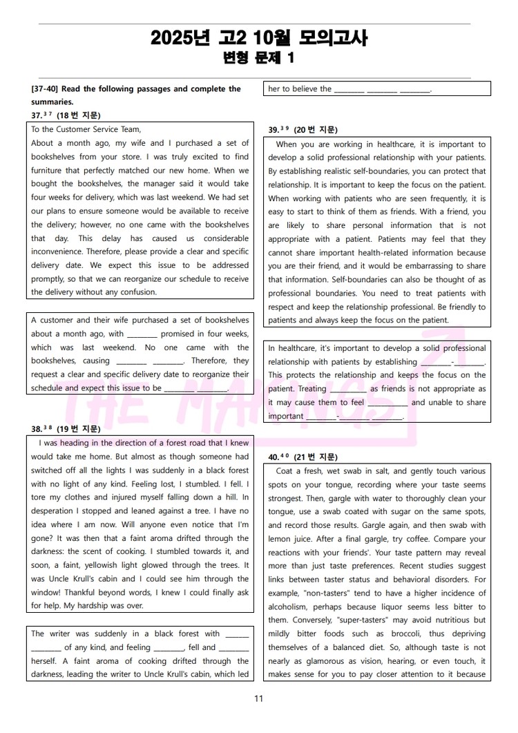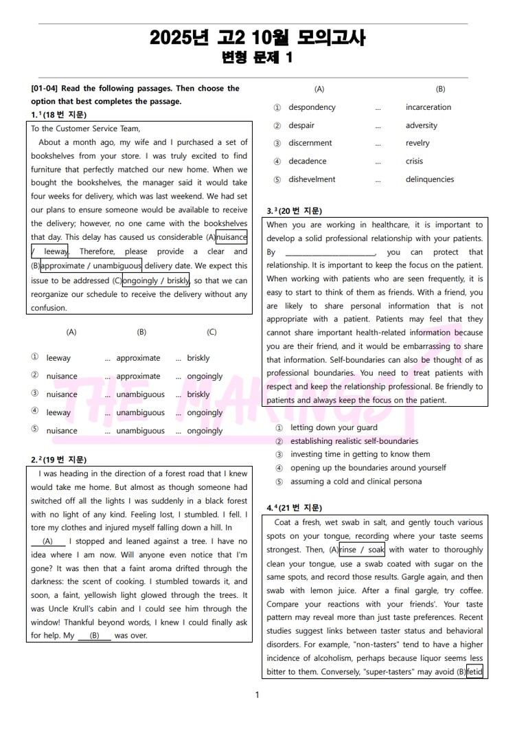 일반 워크북 형태의 문제에서 벗어나 The Makings가 만든 2025년 고2 10월 전국 연합 모의고사 변형 문제 Part 1