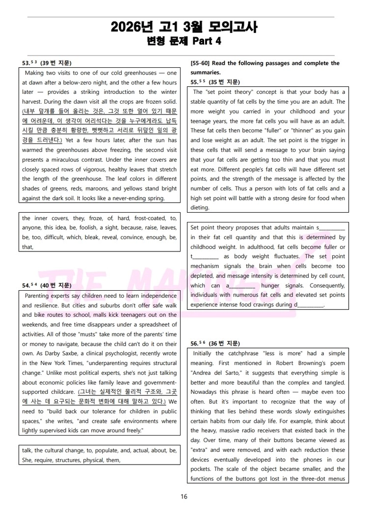 일반 워크북 형태의 문제에서 벗어나 The Makings가 만든 2026년 고1 3월 전국 연합 모의고사 변형 문제 Part 4