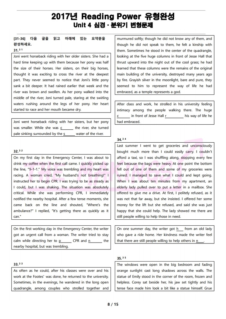 일반 워크북 형태의 문제에서 벗어나 The Makings가 만든 EBS 리딩 파워(Reading Power) 유형 완성 (2017년 개정) 변형 문제 4강은