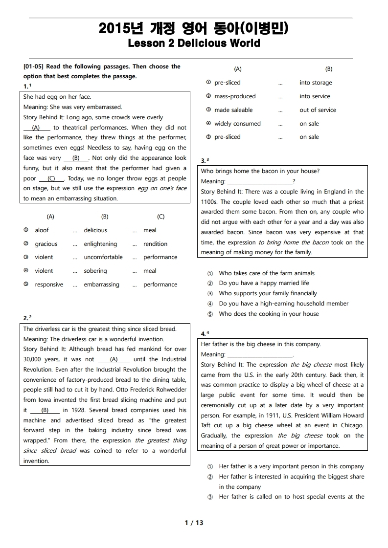 더메이킹스(The Makings)가 제작한 2015년 개정 영어 동아(이병민) 2과의 지문입니다.