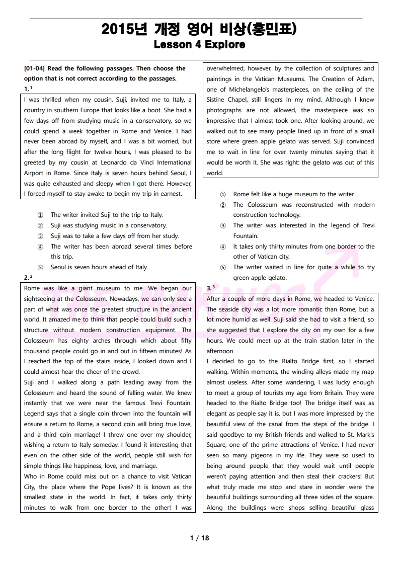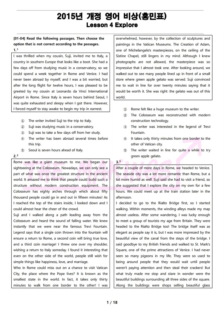 더메이킹스(The Makings)가 제작한 2015년 개정 영어 비상(홍민표) 4과의 지문입니다.