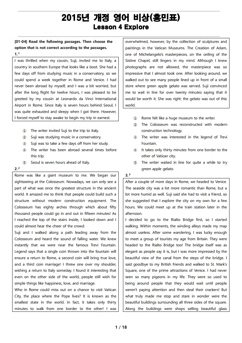 더메이킹스(The Makings)가 제작한 2015년 개정 영어 비상(홍민표) 4과의 지문입니다.