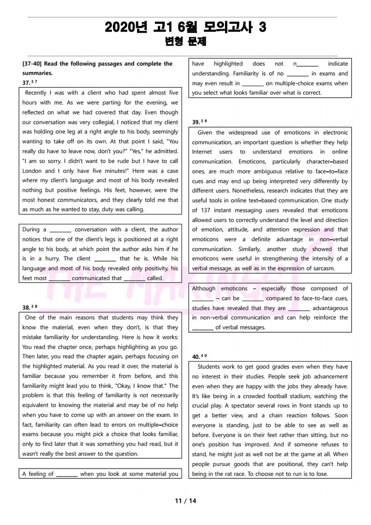 일반 워크북 형태의 문제에서 벗어나 The Makings가 만든 2020년 고1 6월 전국 연합 모의고사 변형 문제 3