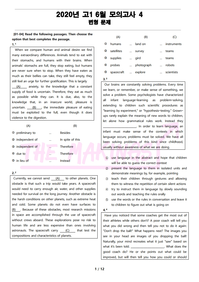 더메이킹스(The Makings)가 제작한 2020년 고1 6월 전국 연합 모의고사 변형 문제 4 의 지문입니다.