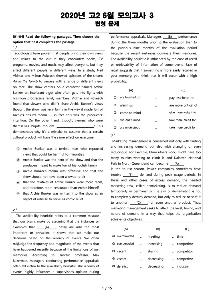 일반 워크북 형태의 문제에서 벗어나 The Makings가 만든 2020년 고2 6월 전국 연합 모의고사 변형 문제 3