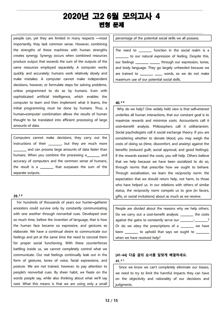 더메이킹스(The Makings)가 제작한 2020년 고2 6월 전국 연합 모의고사 변형 문제 4의 지문입니다.