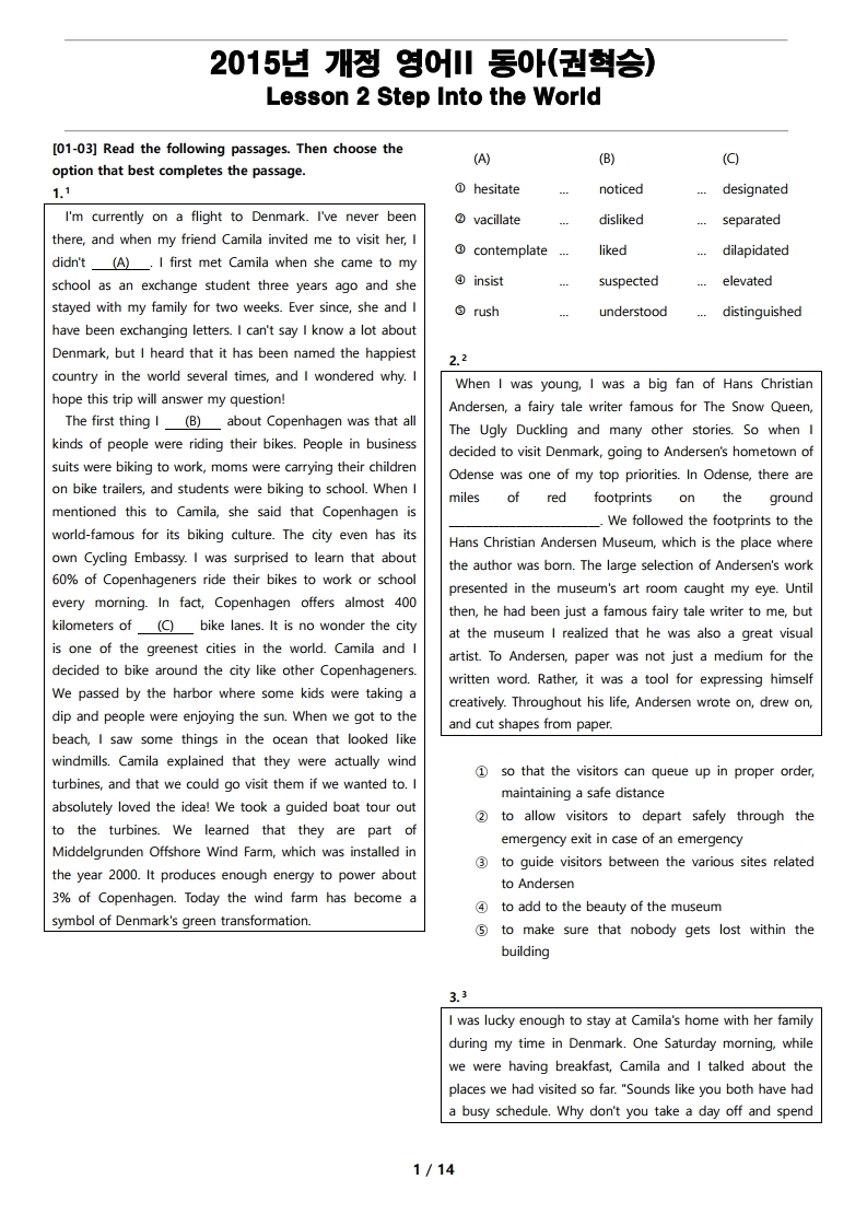 2015년 개정 영어 II 동아(권혁승) 2과 변형 문제 Step Into the World