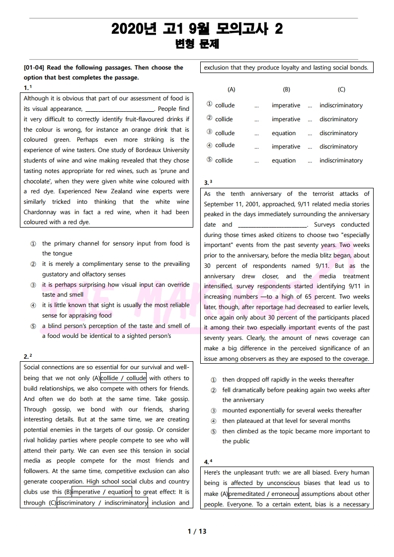 일반 워크북 형태의 문제에서 벗어나 The Makings가 만든 2020년 고1 9월 전국 연합 모의고사 변형 문제 2