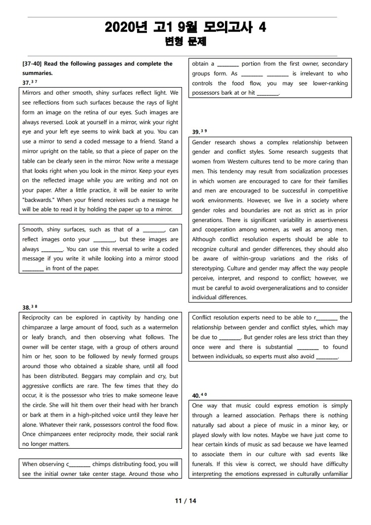 더메이킹스(The Makings)가 제작한 2020년 고1 9월 전국 연합 모의고사 변형 문제 4의 지문입니다.