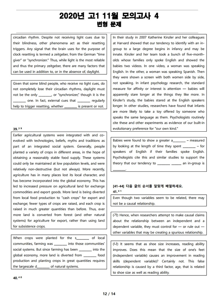 더메이킹스(The Makings)가 제작한 2020년 고1 11월 전국 연합 모의고사 변형 문제 4의 지문입니다.