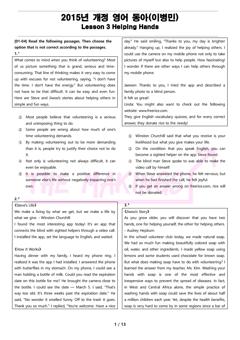 2015년 개정 영어 동아(이병민) 3강 변형 문제 Helping Hands