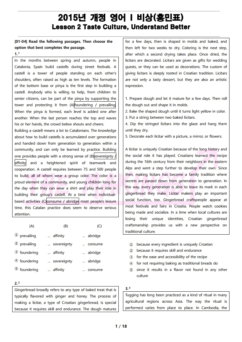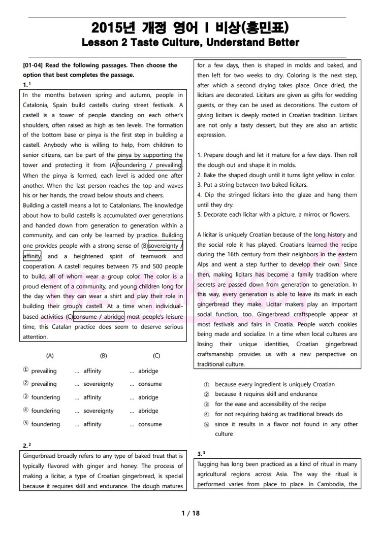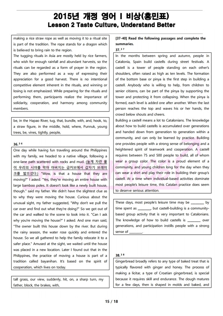 현직에서 강사를 하고 있는 연구진들이 학생들을 위한 최상의 2015년 개정 영어 I 비상(홍민표) 2과 변형 문제를 선보입니다.