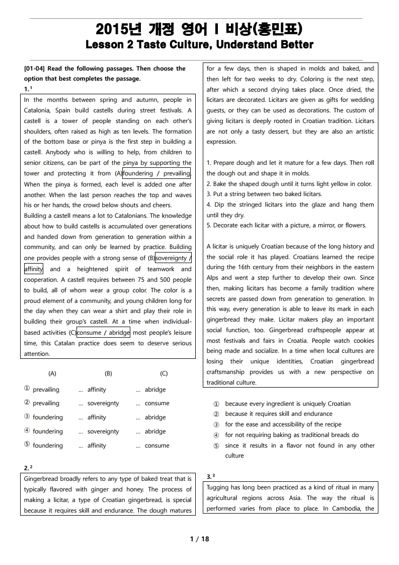 현직에서 강사를 하고 있는 연구진들이 학생들을 위한 최상의 2015년 개정 영어 I 비상(홍민표) 2과 변형 문제를 선보입니다.