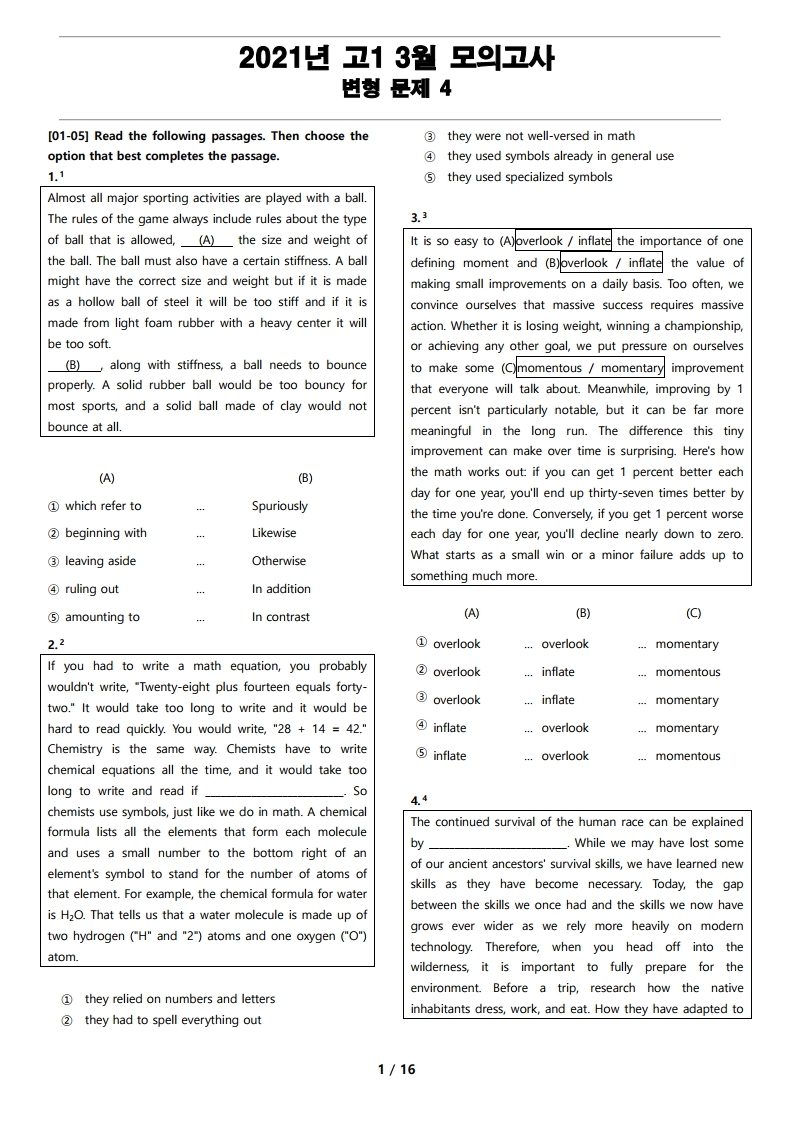 일반 워크북 형태의 문제에서 벗어나 The Makings가 만든 2021년 고1 3월 전국 연합 모의고사 변형 문제 4