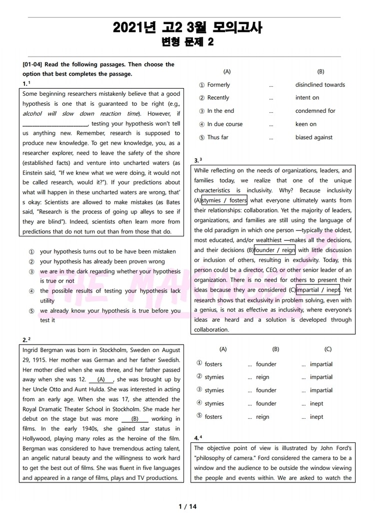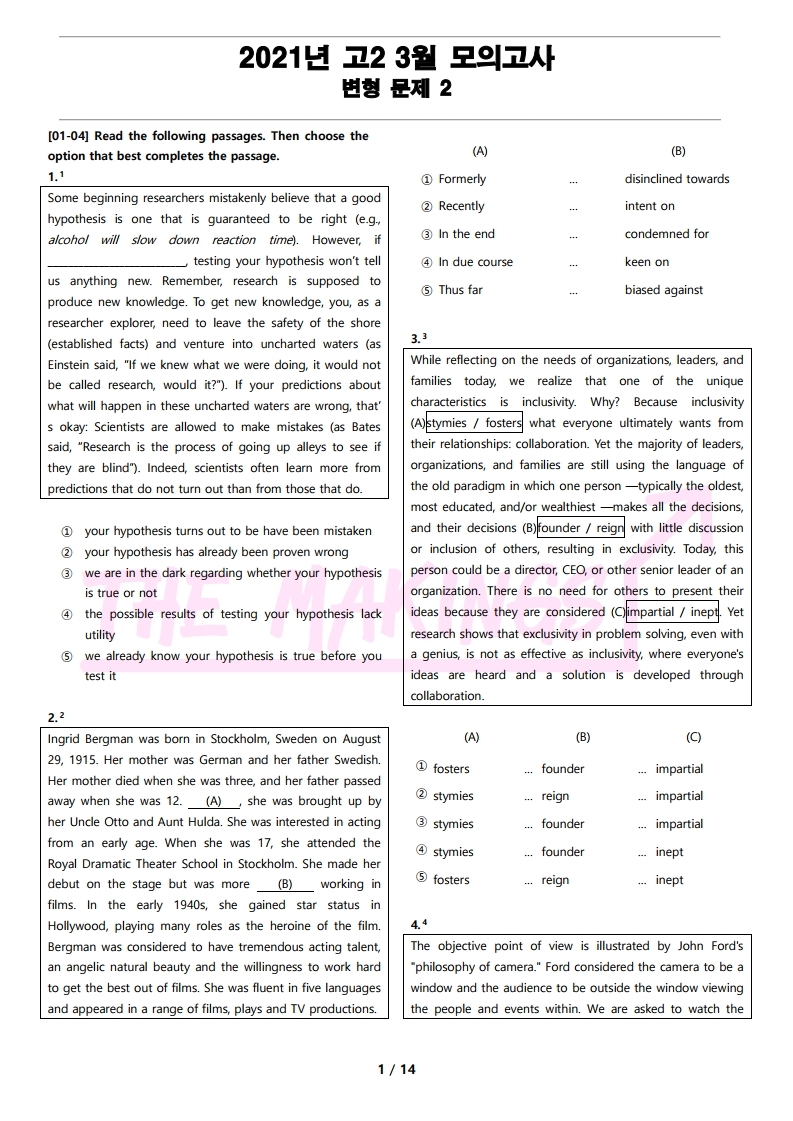 일반 워크북 형태의 문제에서 벗어나 The Makings가 만든 2021년 고2 3월 전국 연합 모의고사 변형 문제 2는